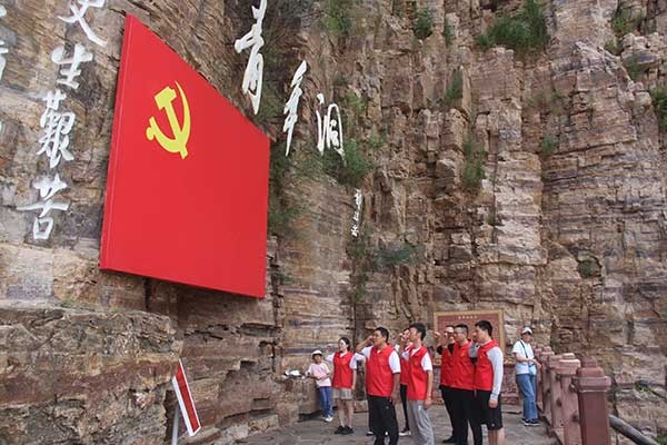 隨后,一行人前往青年洞,這是紅旗渠工程中的重要組成部分。在這里,面對(duì)鮮紅的黨旗,全體黨員莊重地重溫了入黨誓詞,在鏗鏘有力的誓言中,每位黨員的心靈得到了凈化與升華,仿佛與那段波瀾壯闊的歷史產(chǎn)生了跨越時(shí)空的共鳴。這不僅是一次簡(jiǎn)單的宣誓,更是對(duì)紅旗渠精神的傳承與承諾,是對(duì)新時(shí)代使命的勇敢擔(dān)當(dāng)。