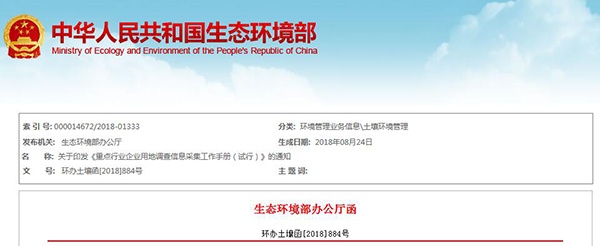 生態(tài)環(huán)境部發(fā)布《重點行業(yè)企業(yè)用地調查信息采集工作手冊(試行)》