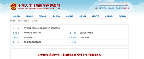 生態(tài)環(huán)境部發(fā)布重點行業(yè)企業(yè)用地調查系列工作手冊