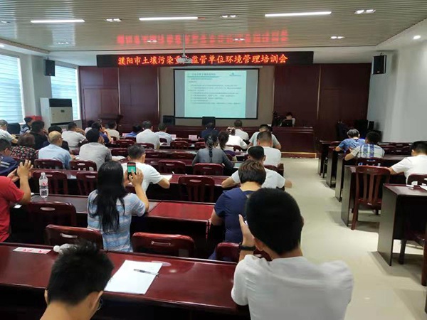 為加快推進(jìn)濮陽市土壤污染防治工作,指導(dǎo)土壤污染重點監(jiān)管單位落實土壤污染防治責(zé)任,濮陽市生態(tài)環(huán)境局于2019年7月23日在濮陽市組織召開全市土壤污染重點監(jiān)管單位環(huán)境管理培訓(xùn)會,會議邀請我司工程部技術(shù)人員李龍強(qiáng)作為專家,濮陽市生態(tài)環(huán)境局土壤生態(tài)環(huán)境科全體人員、市環(huán)境監(jiān)察支隊各大隊大隊長、各縣(區(qū))環(huán)保局、工業(yè)園區(qū)分局、示范區(qū)國土建設(shè)環(huán)保局分管土壤環(huán)境管理工作的副局長及土壤辦全體人員、31家土壤污染重點監(jiān)管單位的分管經(jīng)理和環(huán)保主管人員、我司工程部其他技術(shù)人員出席了會議。