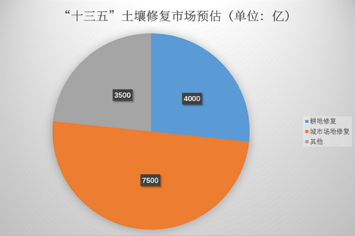 構(gòu)樂(lè)觀估計(jì),“十三五”期間,我國(guó)土壤修整市場(chǎng)的空間可以突破1.5萬(wàn)億元,其中又以耕地與城市場(chǎng)地修整為,前者有近4000億的潛在空間,后者則達(dá)到7500億之多。