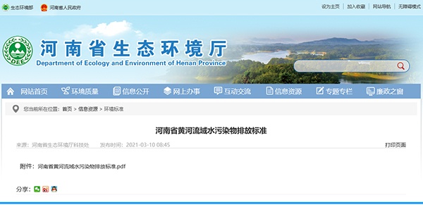 《河南省黃河流域水污染物排放標(biāo)準(zhǔn)》(DB41/2087-2021)已經(jīng)省政府同意,并于2021年1月20日由省生態(tài)環(huán)境廳、省市場(chǎng)監(jiān)督管理局聯(lián)合發(fā)布,2021年3月1日起實(shí)施。