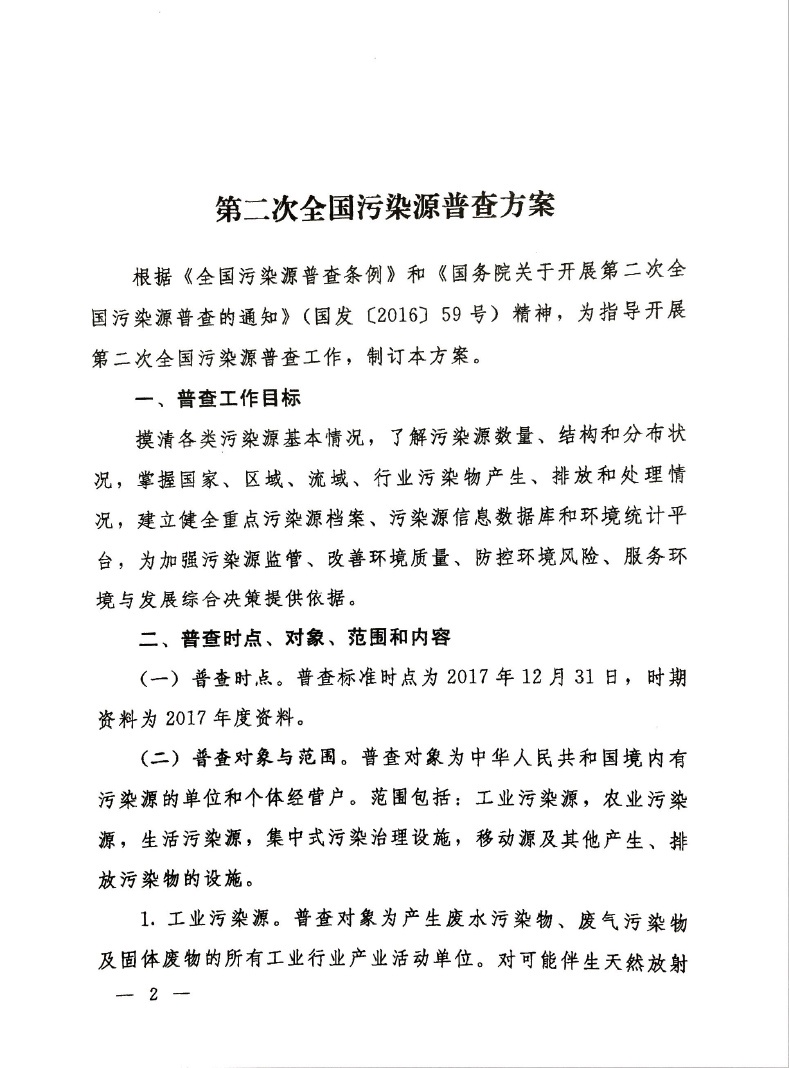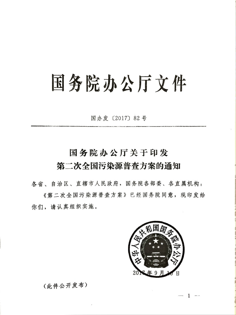 國辦發(fā)【2017】82號關(guān)于印發(fā)第二次全國污染源普查方案的通知