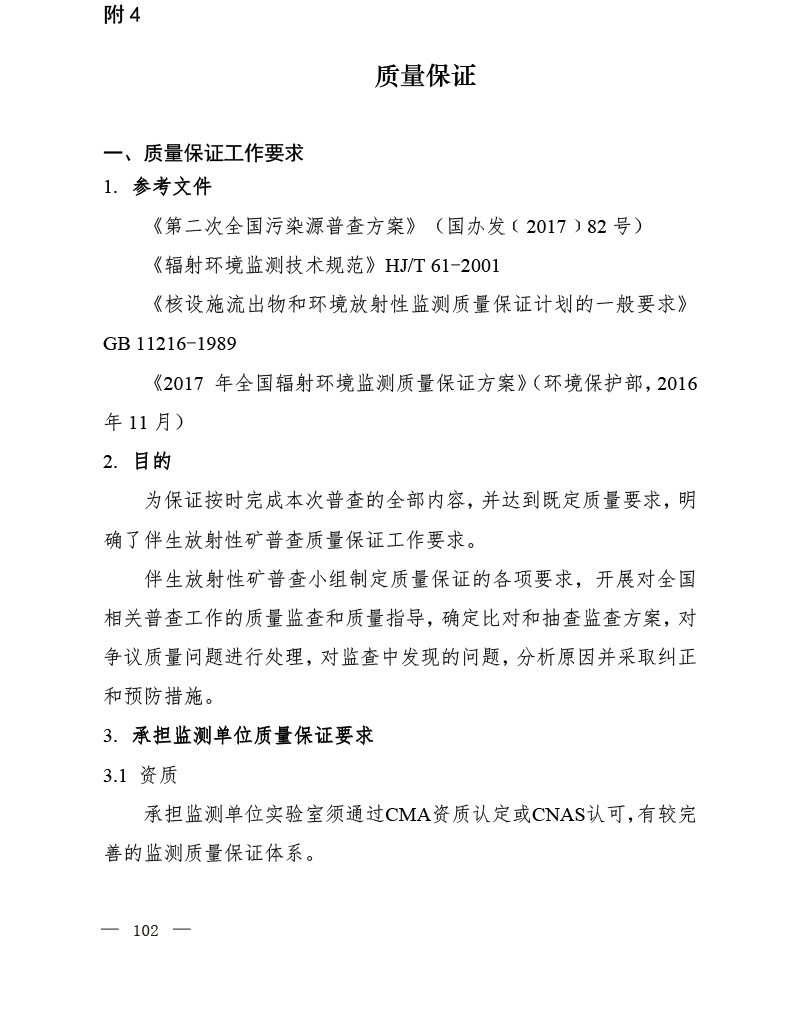 國污普【2018】1號關(guān)于印發(fā)《第二次全國污染源普查伴生放射性礦普查檢測技術(shù)規(guī)定》的通知全文