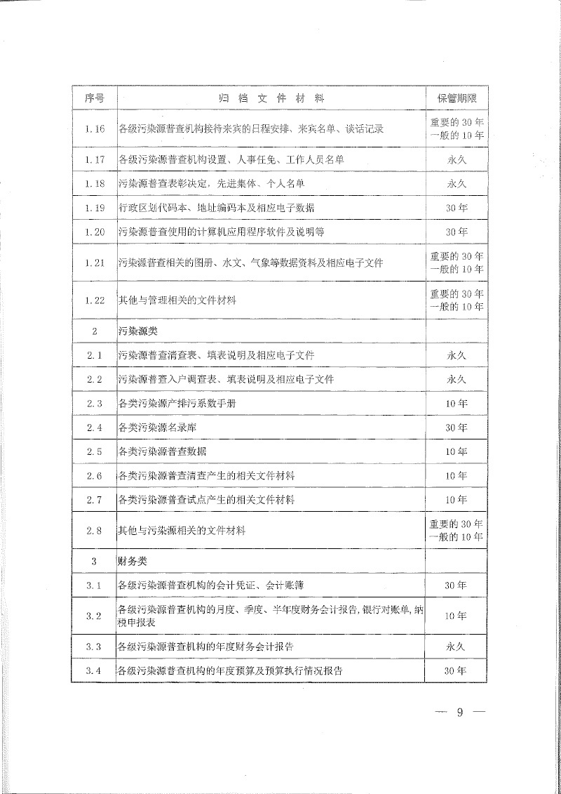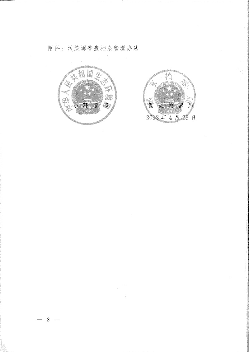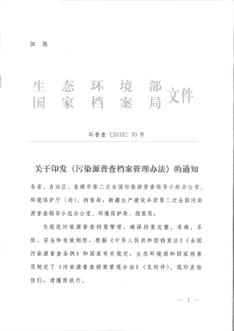 環(huán)普查【2018】30號關(guān)于印發(fā)《污染源普查檔案管理辦法》的通知