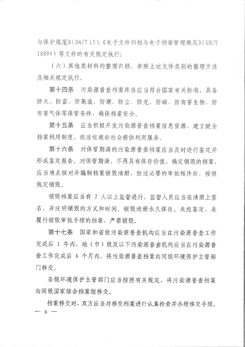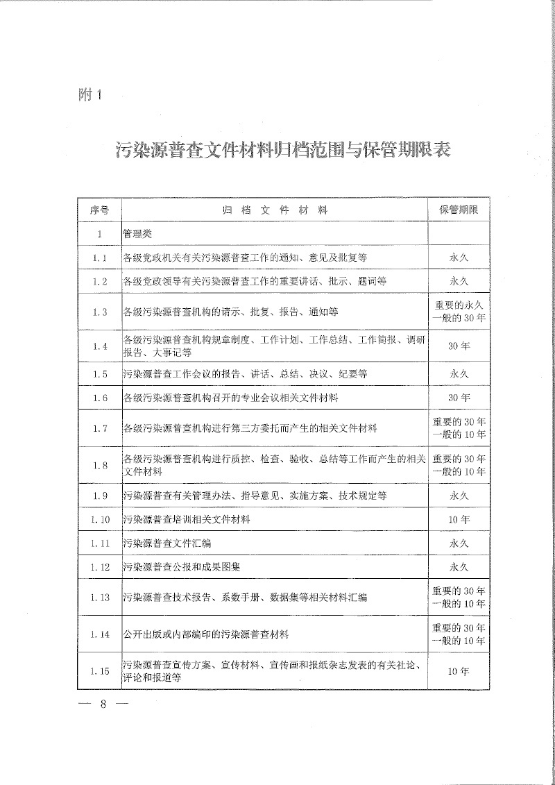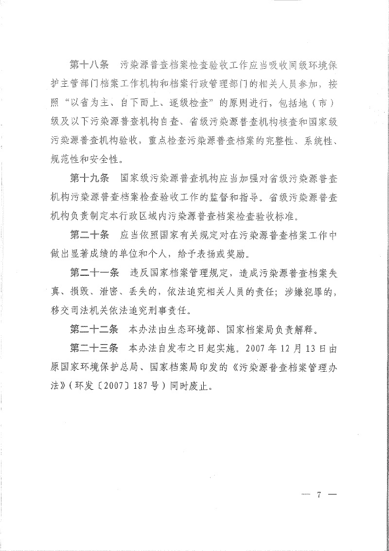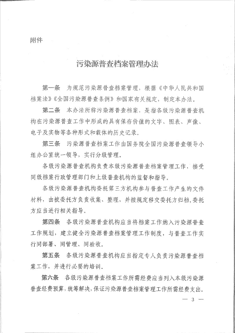 環(huán)普查【2018】30號關(guān)于印發(fā)《污染源普查檔案管理辦法》的通知