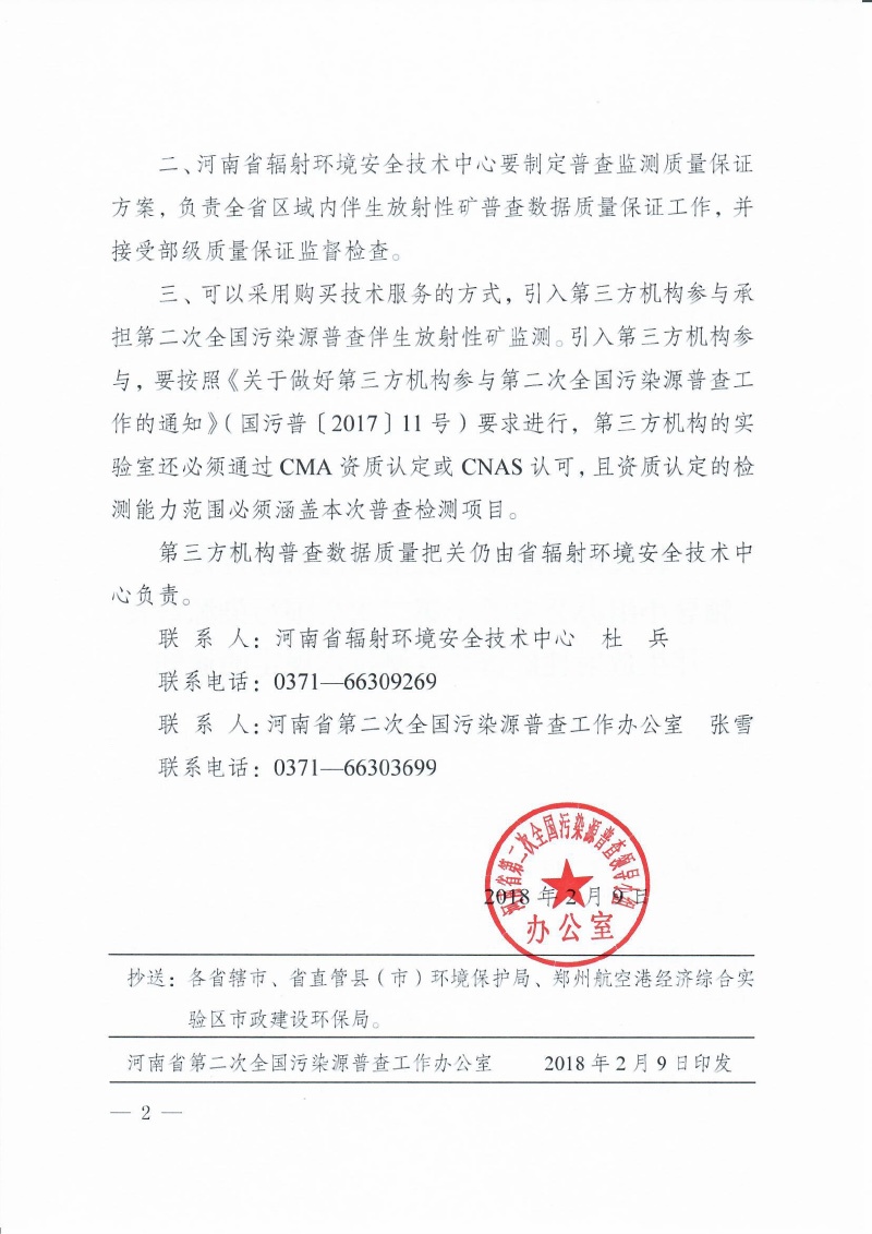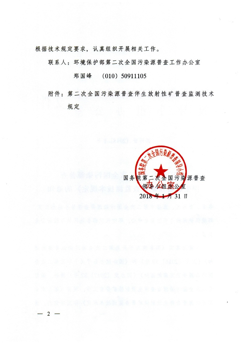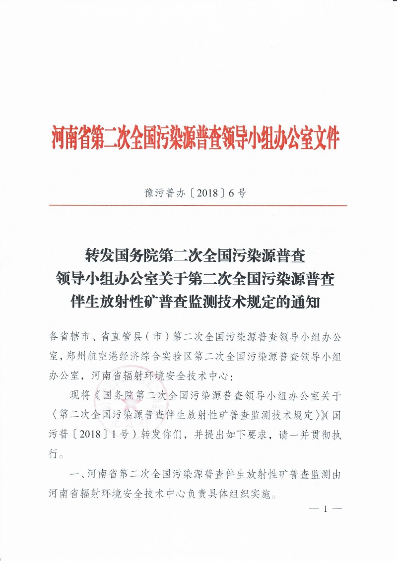 豫污普辦【2018】6號轉發(fā)國務院第二次全國污染源普查領導小組辦公室關于印發(fā)第二次全國污染源普查領導小組辦公室有關伴生礦普查監(jiān)測技術規(guī)范的通知
