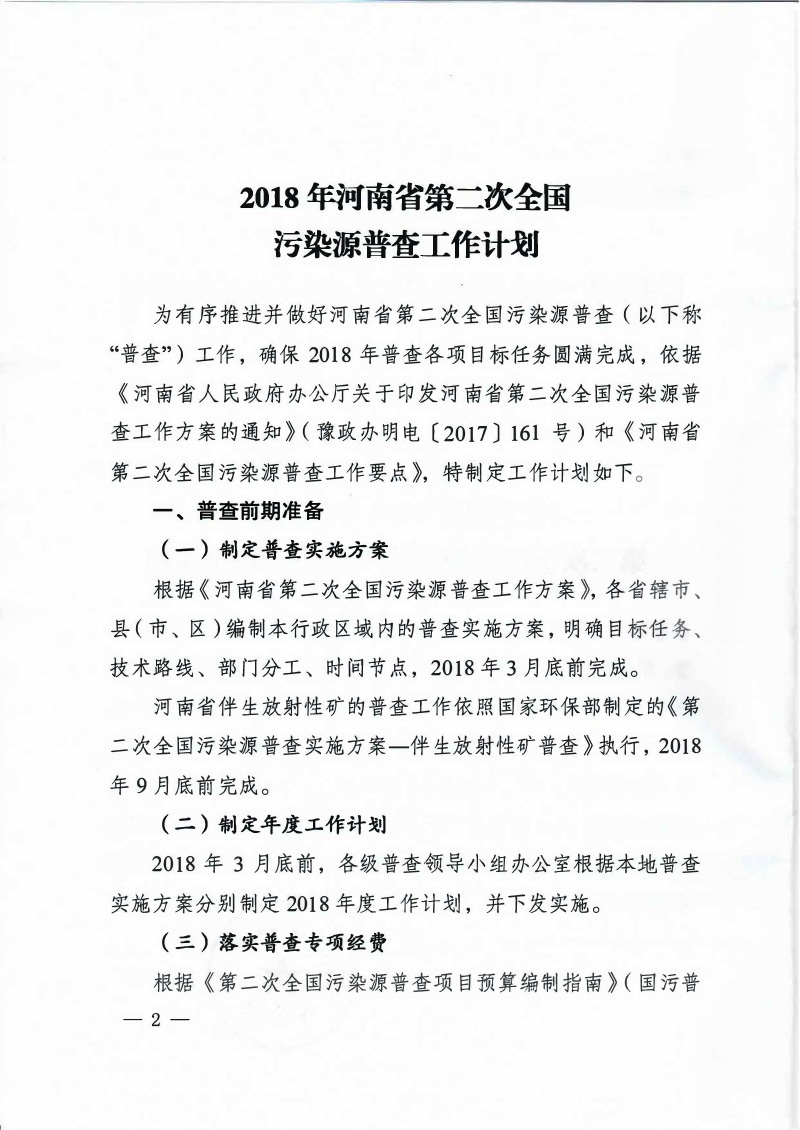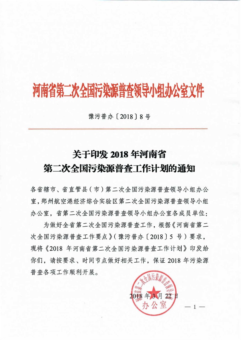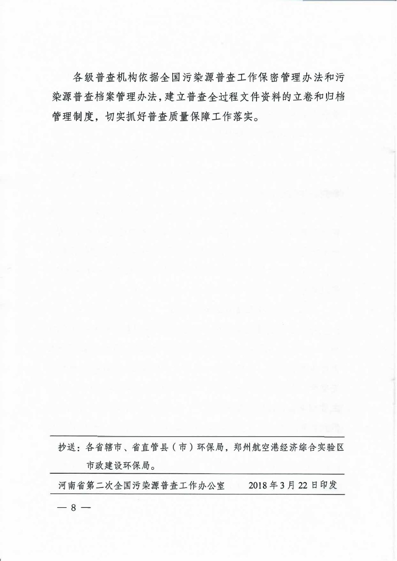 豫污普辦【2018】8號(hào)關(guān)于印發(fā)2018年河南省第二次全國污染源普查工作計(jì)劃的通知