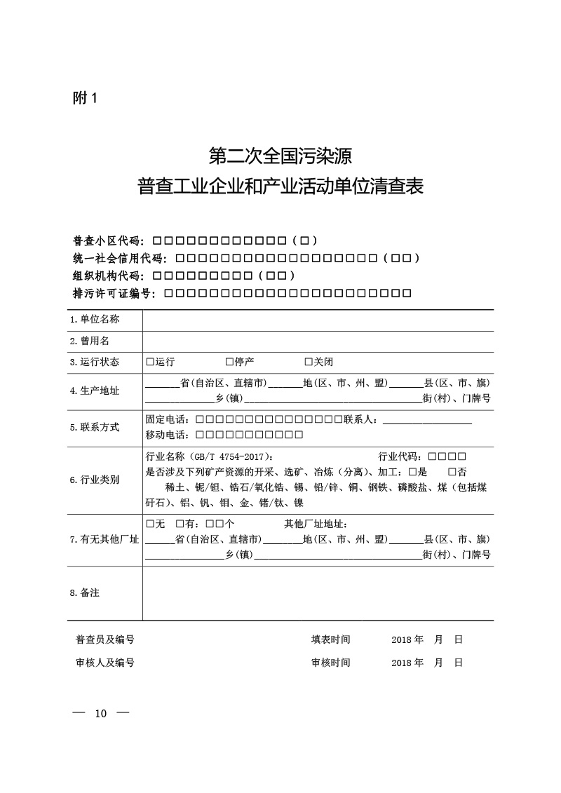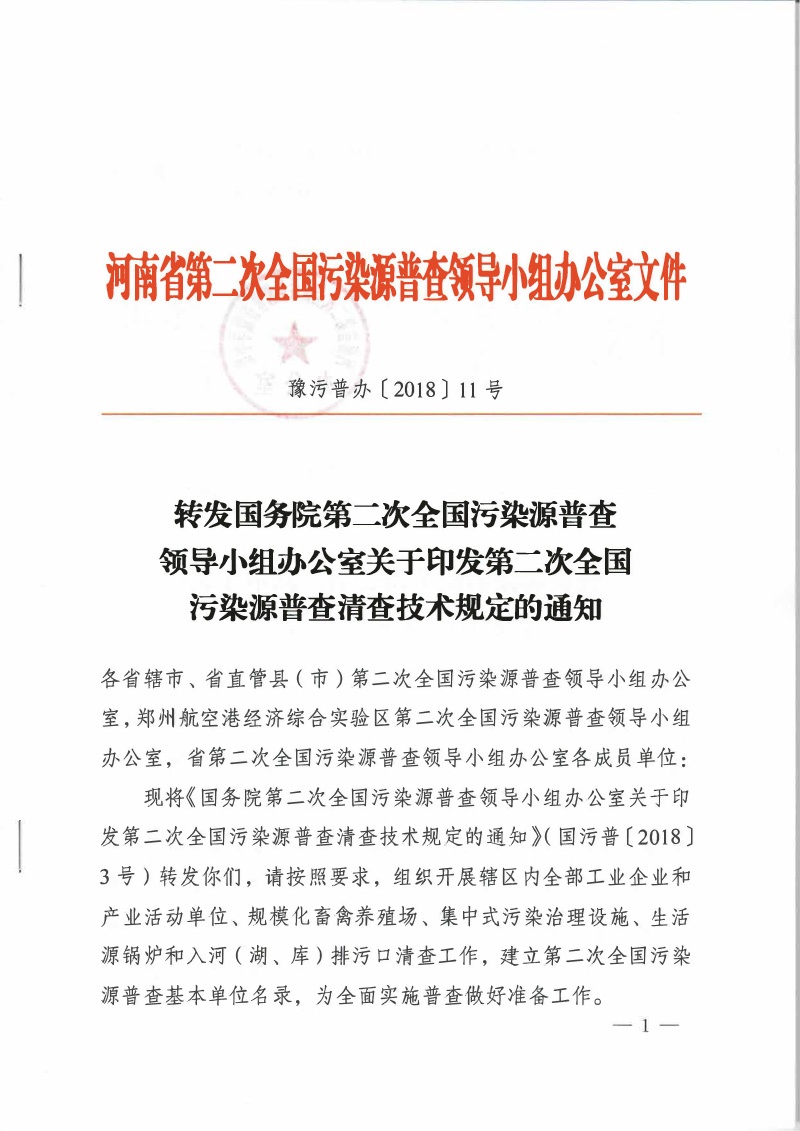 豫污普辦【2018】11號(hào)轉(zhuǎn)發(fā)國(guó)務(wù)院第二次全國(guó)污染源普查領(lǐng)導(dǎo)小組辦公室關(guān)于印發(fā)第二次全國(guó)污染源普查清查技術(shù)規(guī)定的通知