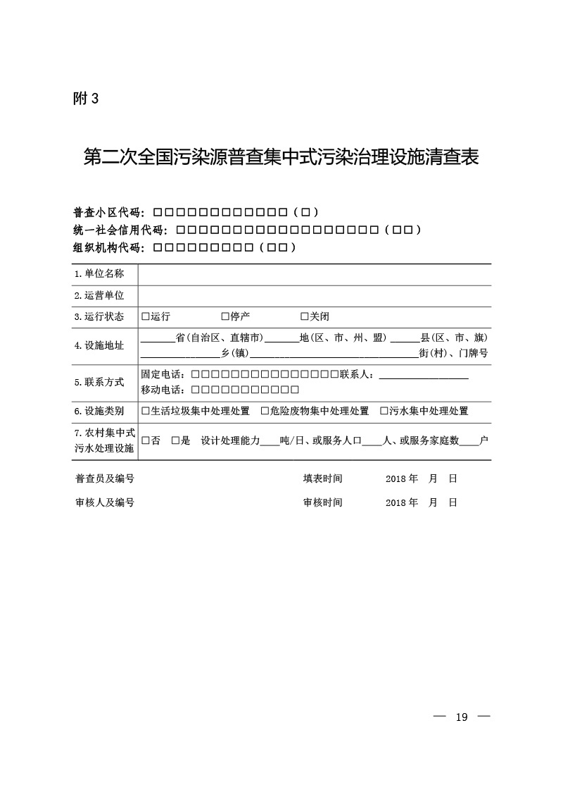 上一篇:豫污普辦【2018】10號(hào)關(guān)于河南省第二次全國(guó)污染源普查統(tǒng)一規(guī)范使用統(tǒng)計(jì)用區(qū)劃代碼的通知 下一篇:豫污普辦【2018】12號(hào)轉(zhuǎn)發(fā)國(guó)務(wù)院第二次全國(guó)污染源普查領(lǐng)導(dǎo)小組辦公室關(guān)于開展第二次全國(guó)污染源普查入河(海)排污口普查與監(jiān)測(cè)工作的通知