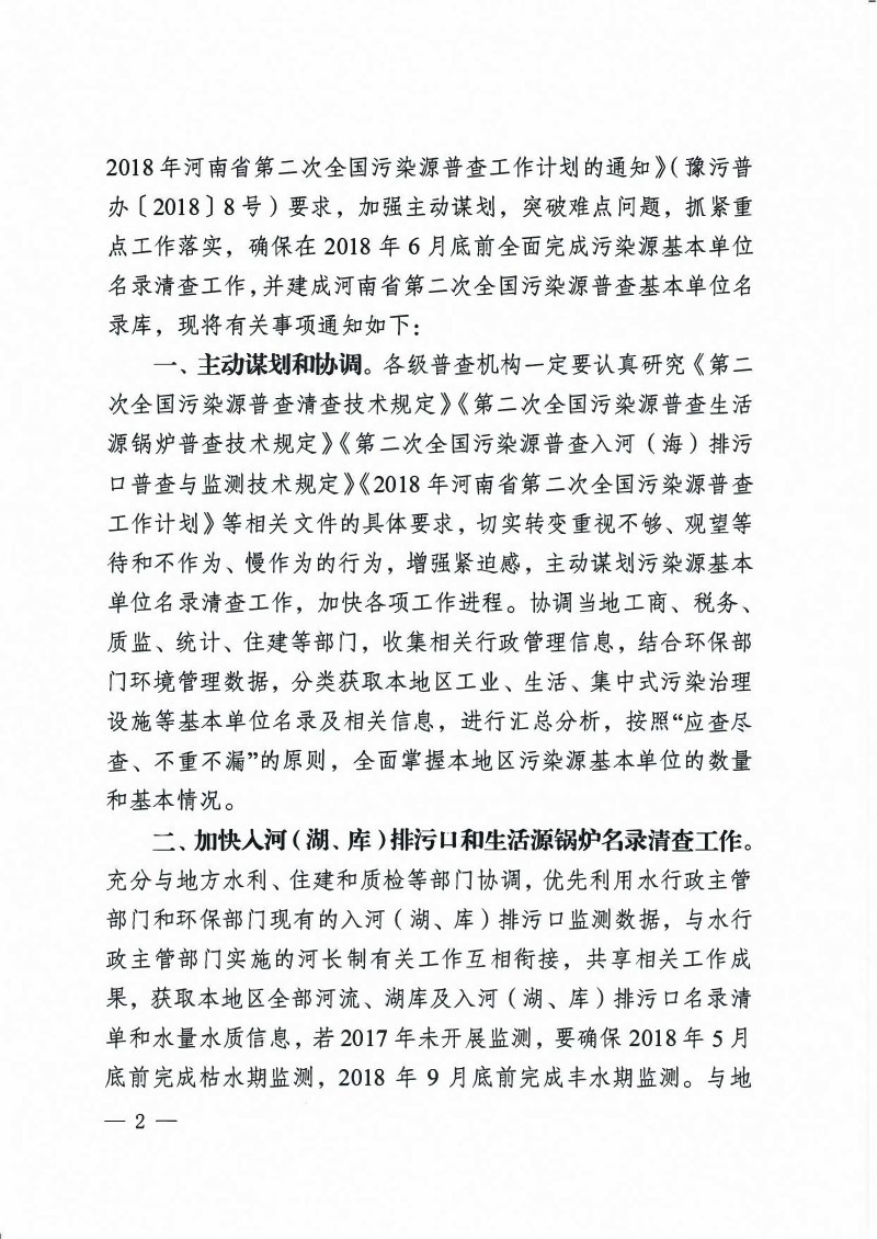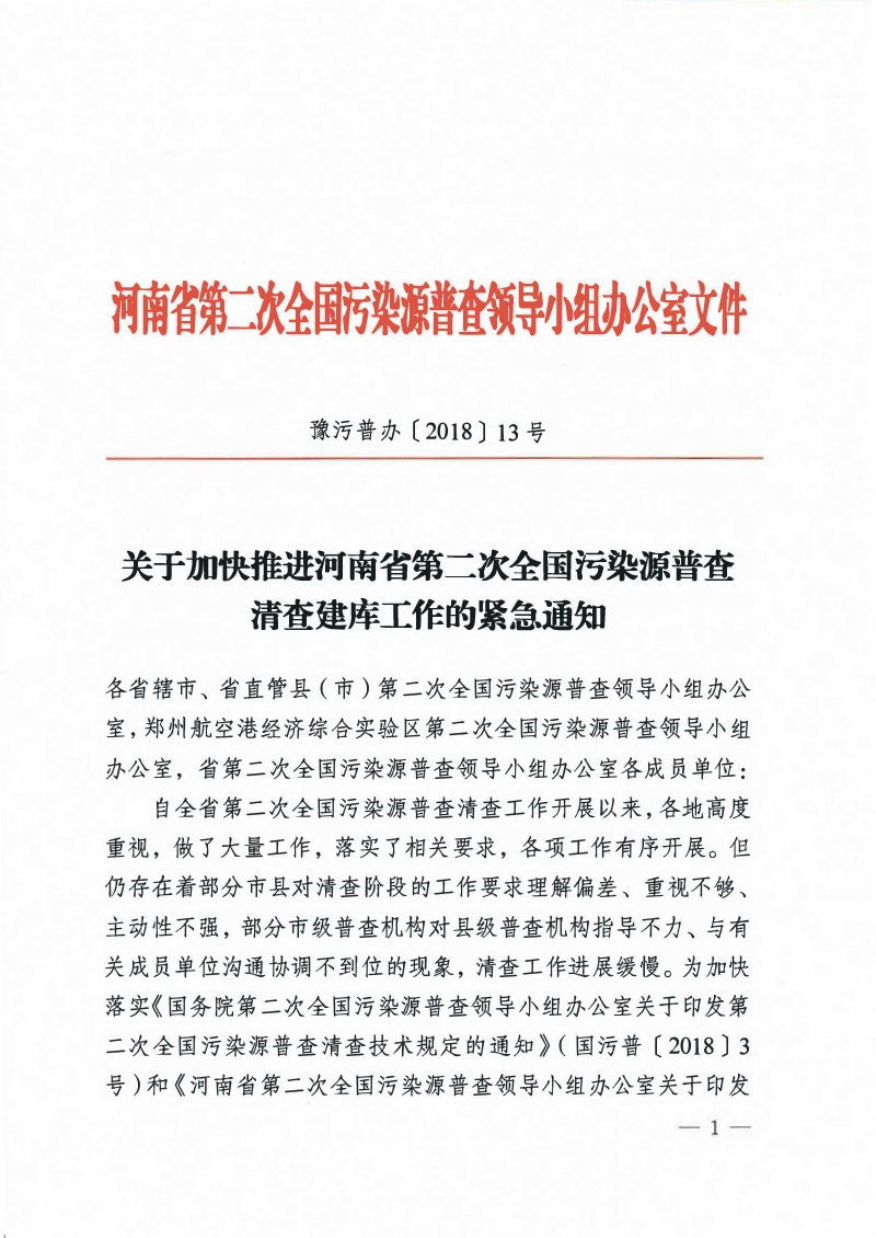 豫污普辦【2018】13號關(guān)于加快推進(jìn)河南省第二次全國污染源普查清查建庫工作的緊急通知