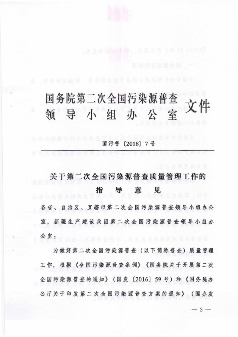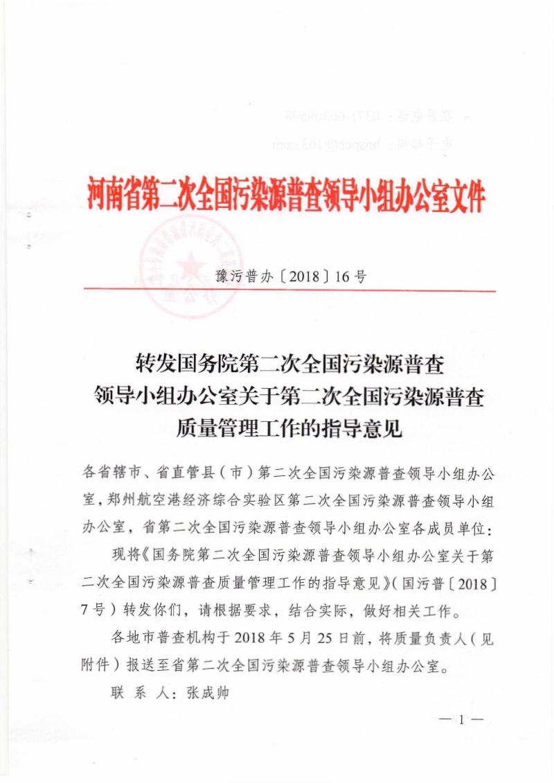 豫污普辦【2018】16號轉(zhuǎn)發(fā)關(guān)于第二次全國污染源普查質(zhì)量管理工作的指導意見