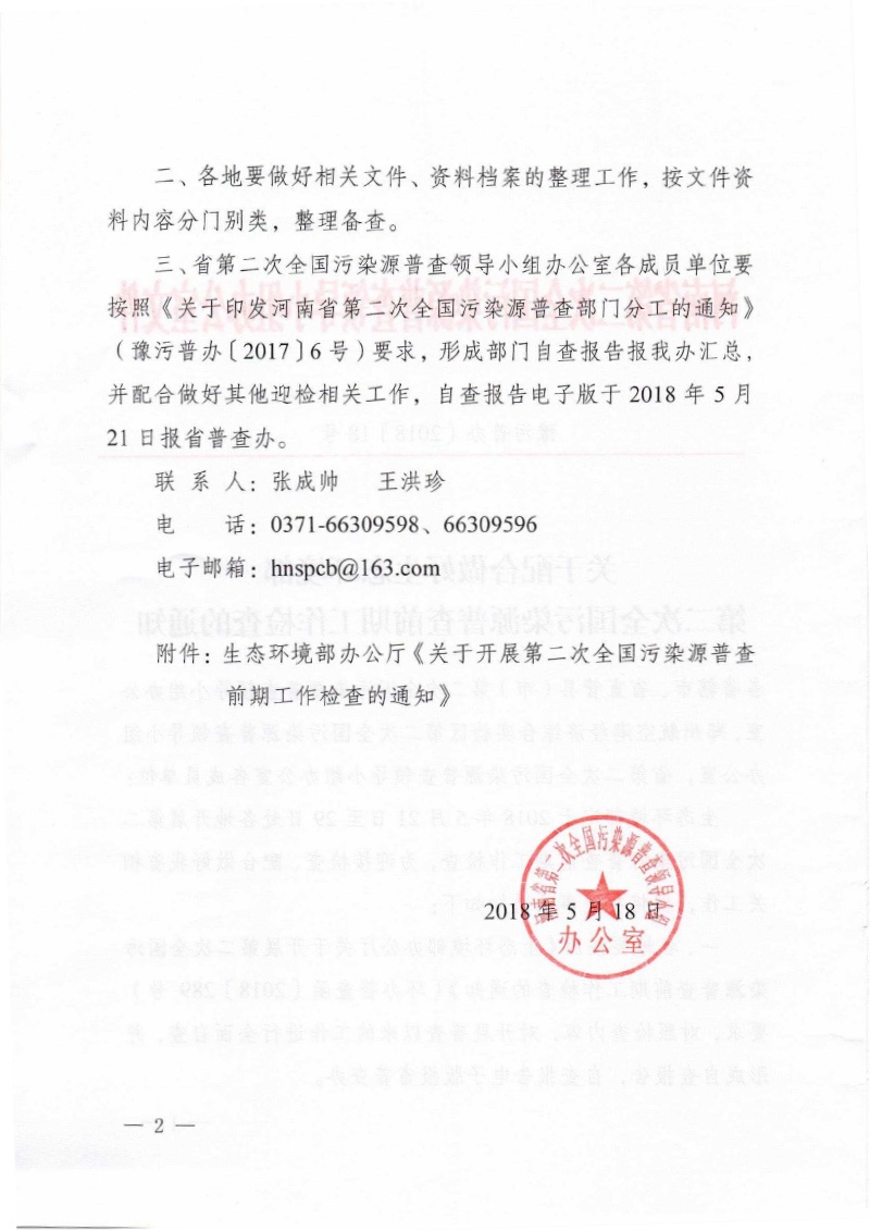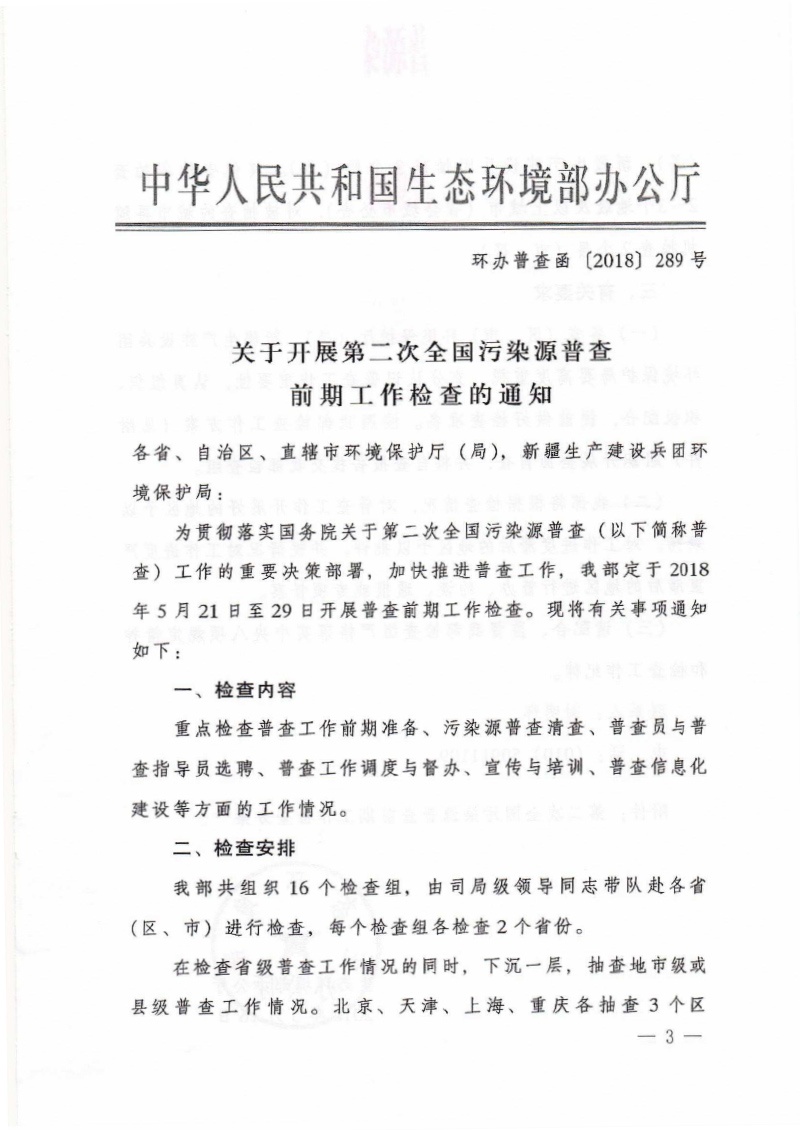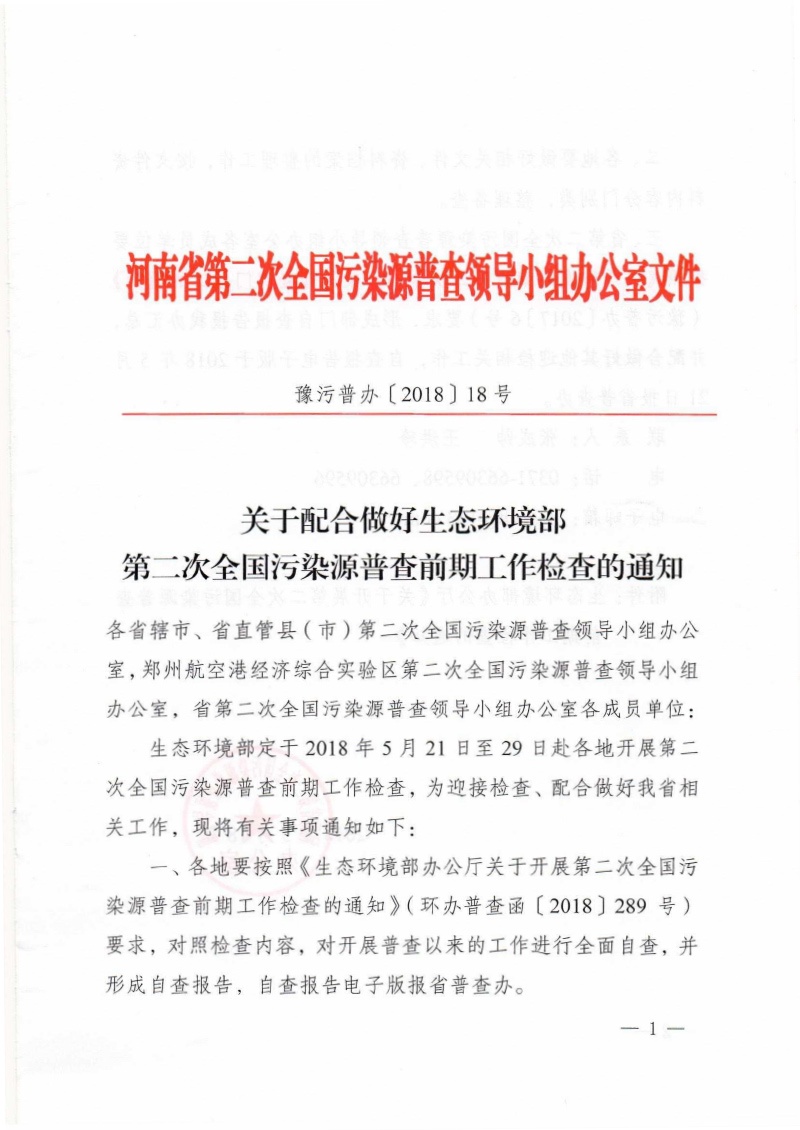 豫污普辦【2018】18號(hào)關(guān)于配合做好生態(tài)環(huán)境部第二次全國(guó)污染源普查前期工作檢查的通知