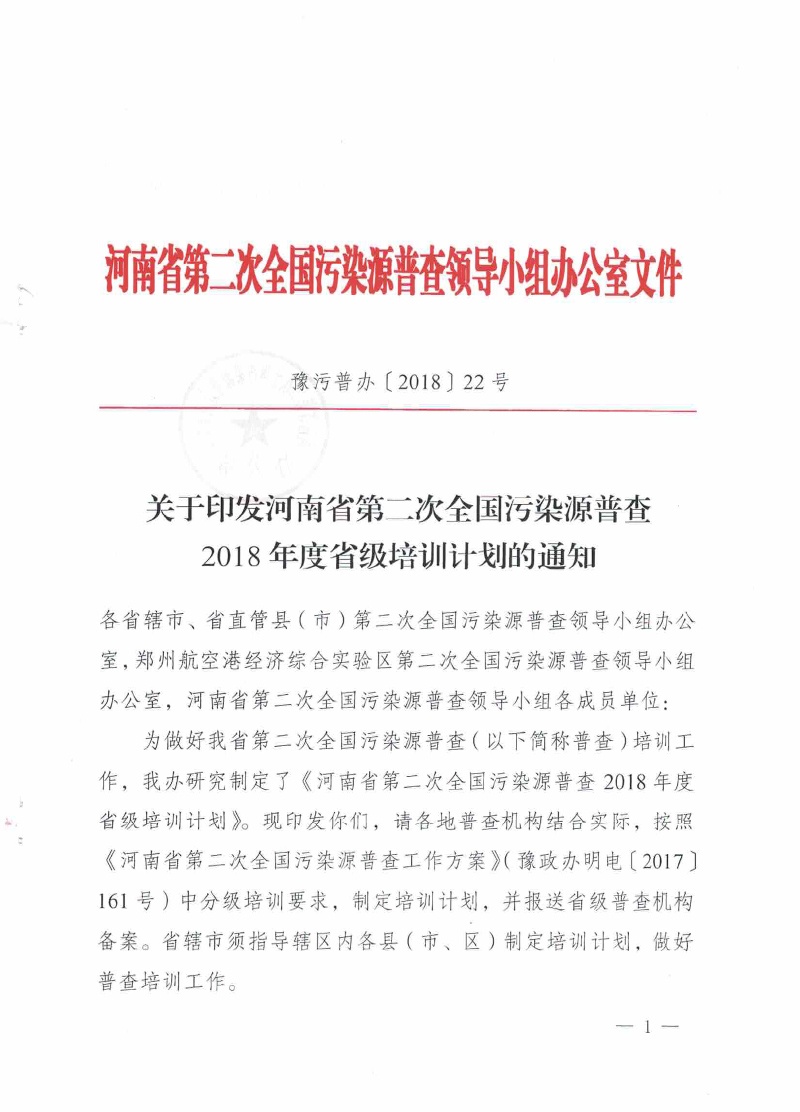 豫污普辦【2018】22號關(guān)于印發(fā)河南省第二次全國污染源普查2018年度省級培訓(xùn)計劃的通知