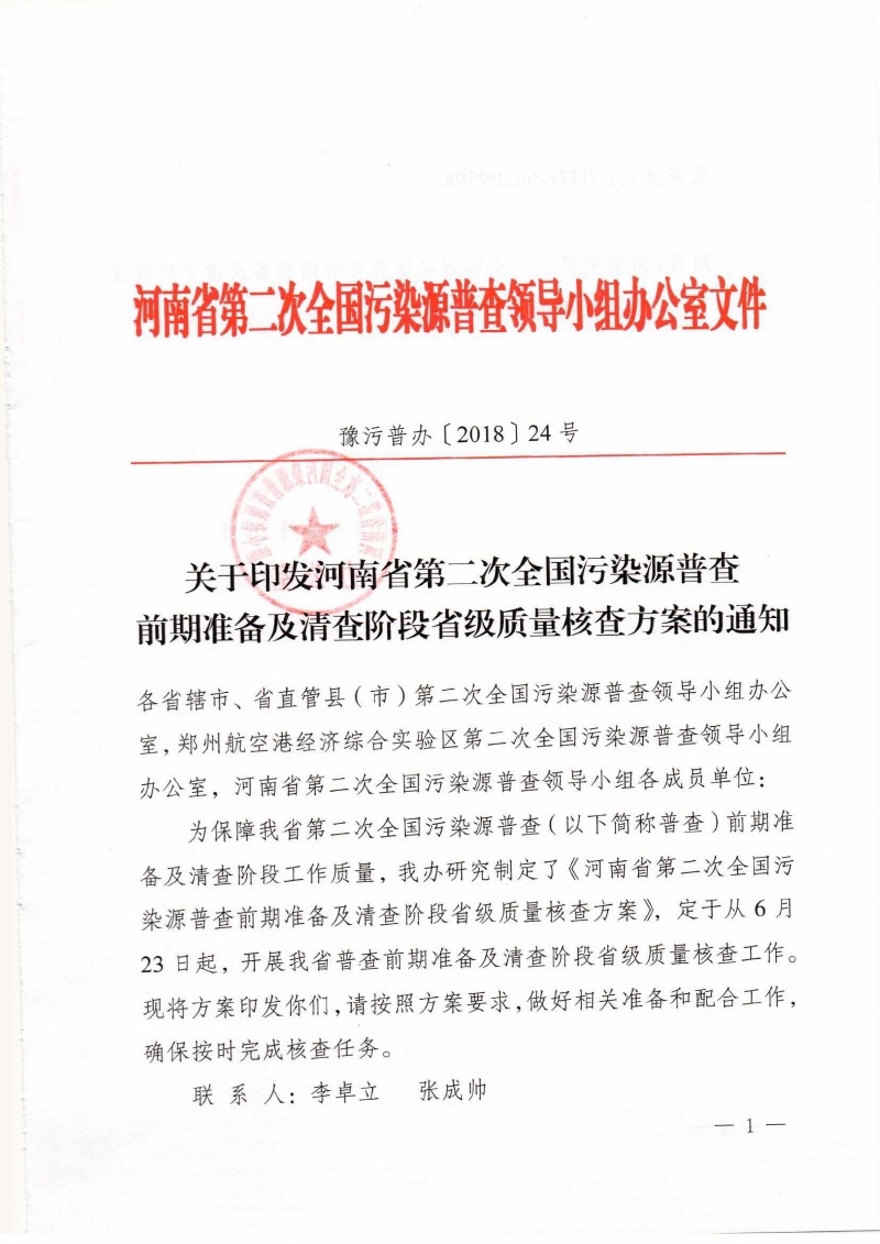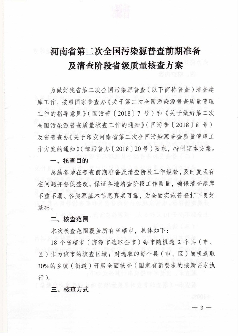 豫污普辦【2018】24號關(guān)于印發(fā)河南省清查階段省級質(zhì)量核查工作方案的通知