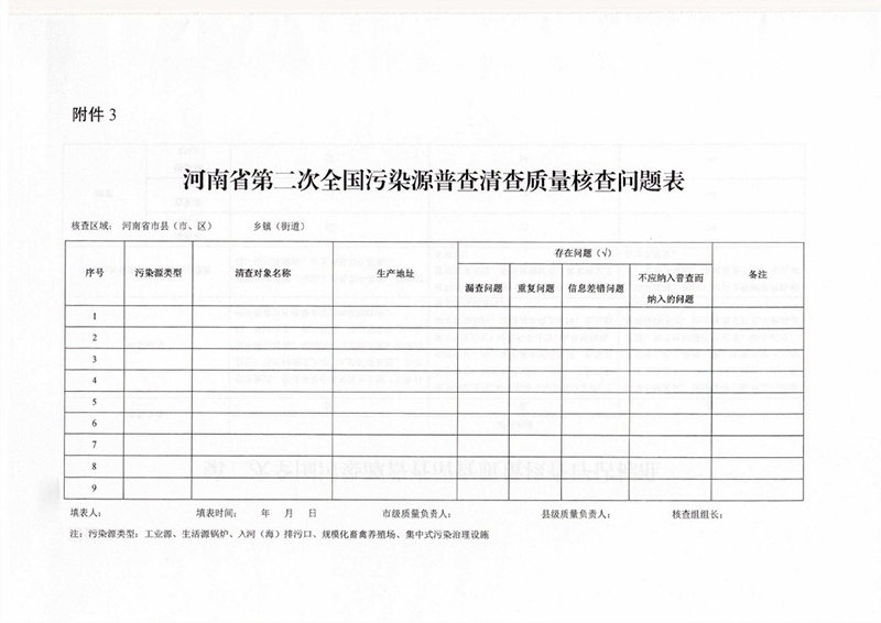 上一篇:豫污普辦【2018】22號關(guān)于印發(fā)河南省第二次全國污染源普查2018年度省級培訓計劃的通知 下一篇:豫污普辦【2018】25號轉(zhuǎn)發(fā)國務(wù)院第二次全國污染源普查領(lǐng)導小組辦公室關(guān)于做好第二次全國污染源普查清查結(jié)果報送工作的通知