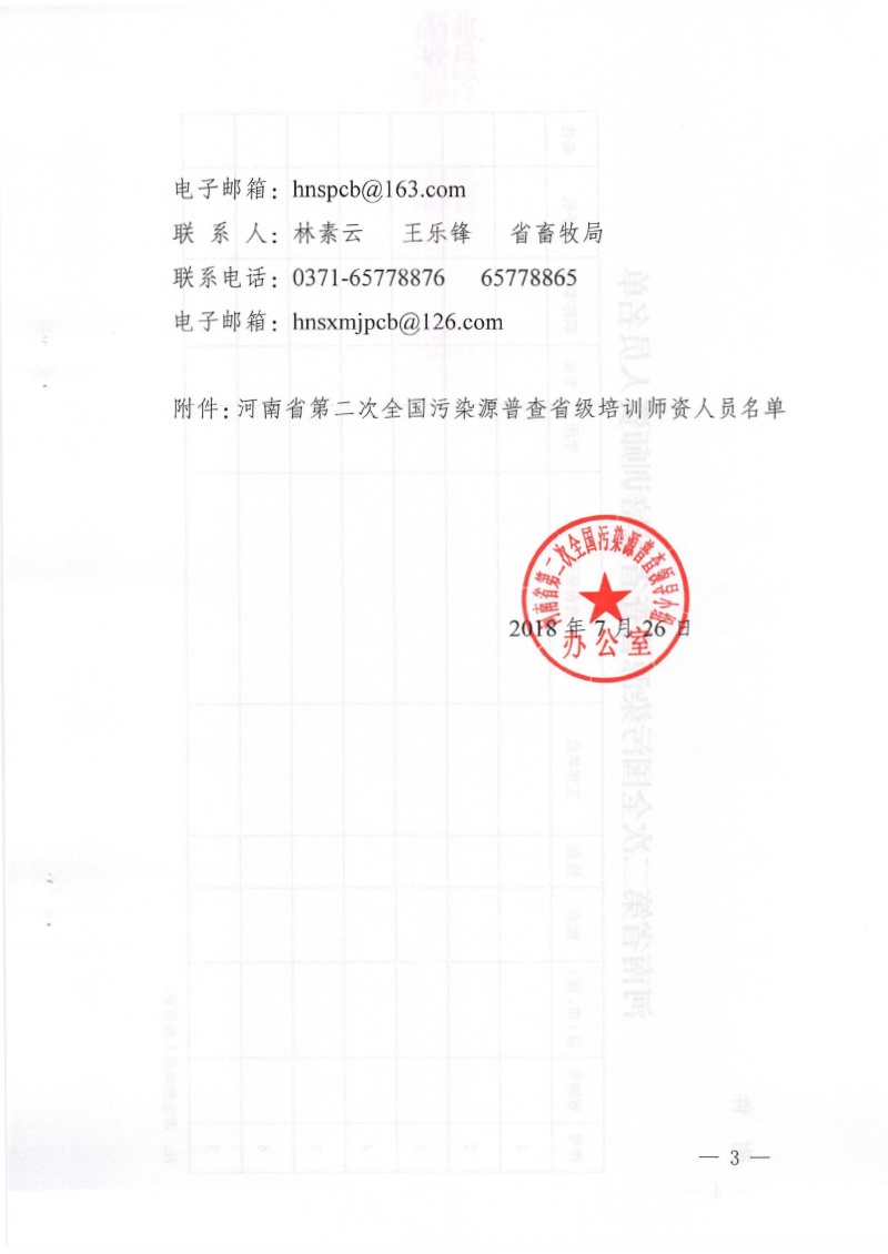 豫污普辦【2018】28號)關(guān)于上報(bào)河南省第二次全國污染源普查省級 培訓(xùn)師資人員名單的通知
