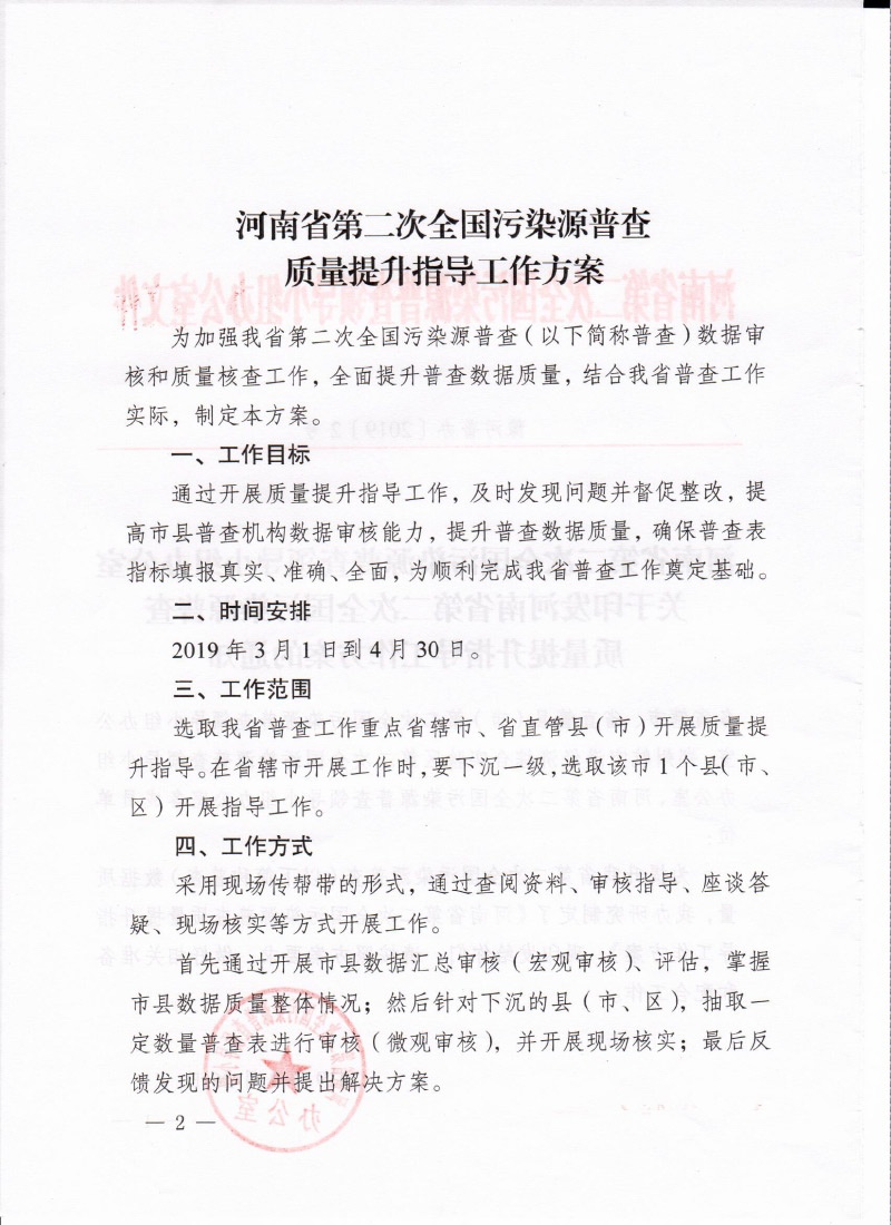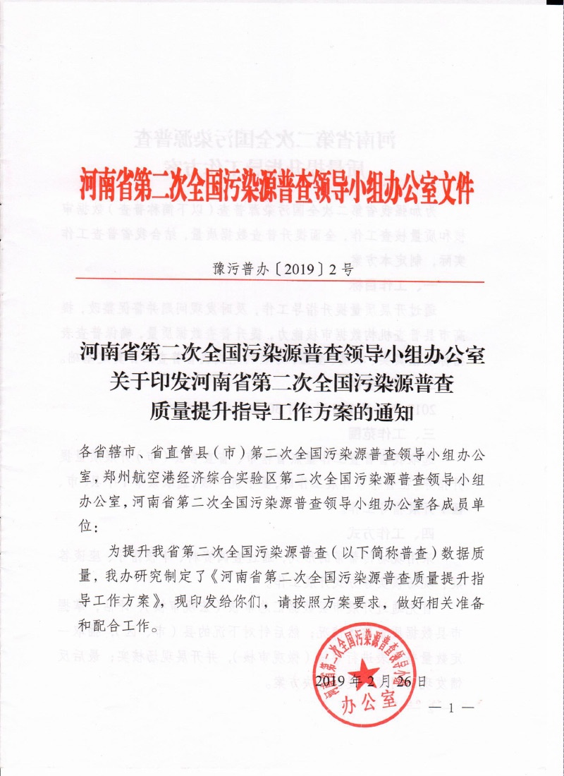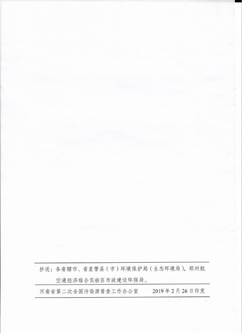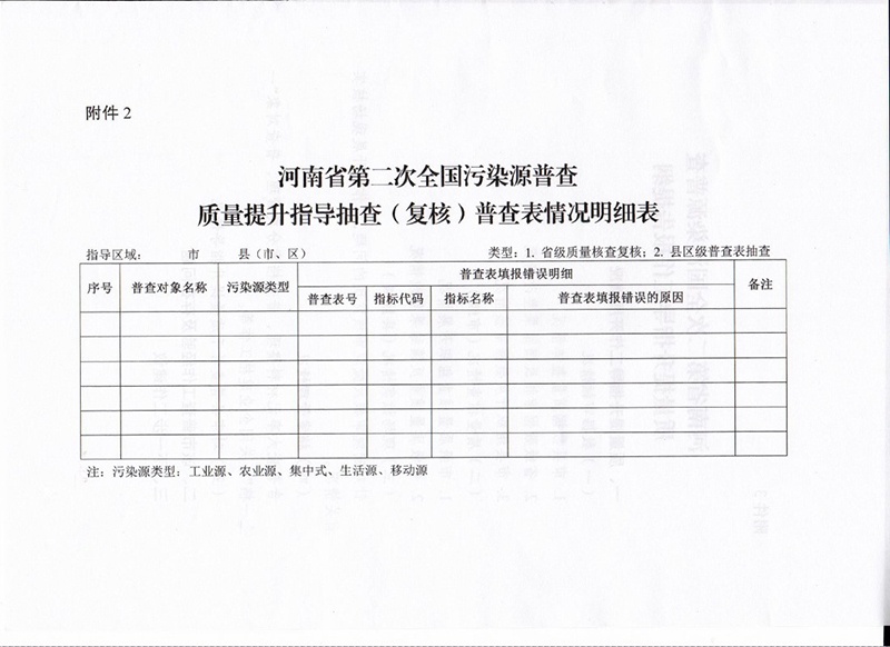 豫污普辦【2019】2號關于印發(fā)河南省第二次全國污染源普查入戶調(diào)查階段質(zhì)量提升指導工作方案的通知
