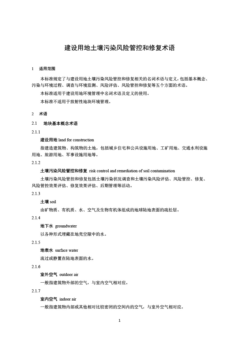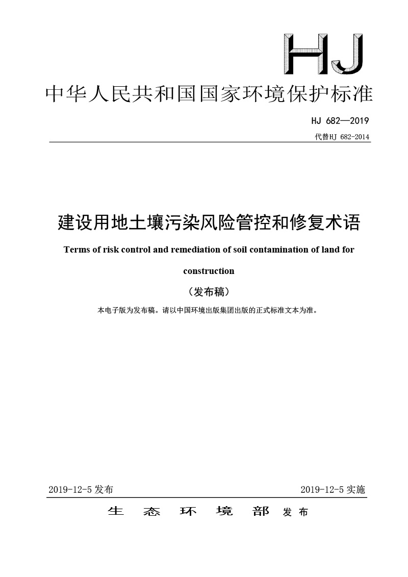 建設(shè)用地土壤污染風(fēng)險(xiǎn)管控和修復(fù)術(shù)語(yǔ)( HJ 682-2019 )