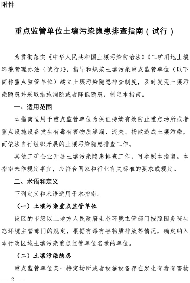 重點(diǎn)監(jiān)管單位土壤污染隱患排查指南(試行)